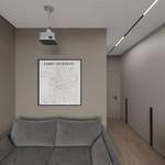 Дизайн проект создан для молодой пары. Интерьер выполнен в минималистичном стиле, с уклоном в джапанди. Основной упор на нейтральные цвета и натуральные текстуры. Главной зоной притяжения является кухня-гостиная, с акцентной столовой группой с раздвижным столом, для уютных семейных застолий. Выразительной частью зоны ТВ является декоративная штукатурка, текстура которой подчеркивается подсветкой. В кабинете предусмотрено два рабочих места, в том числе стол с подъемным механизмом. Кабинет оснащен проектором и экраном с моторизированным приводом.