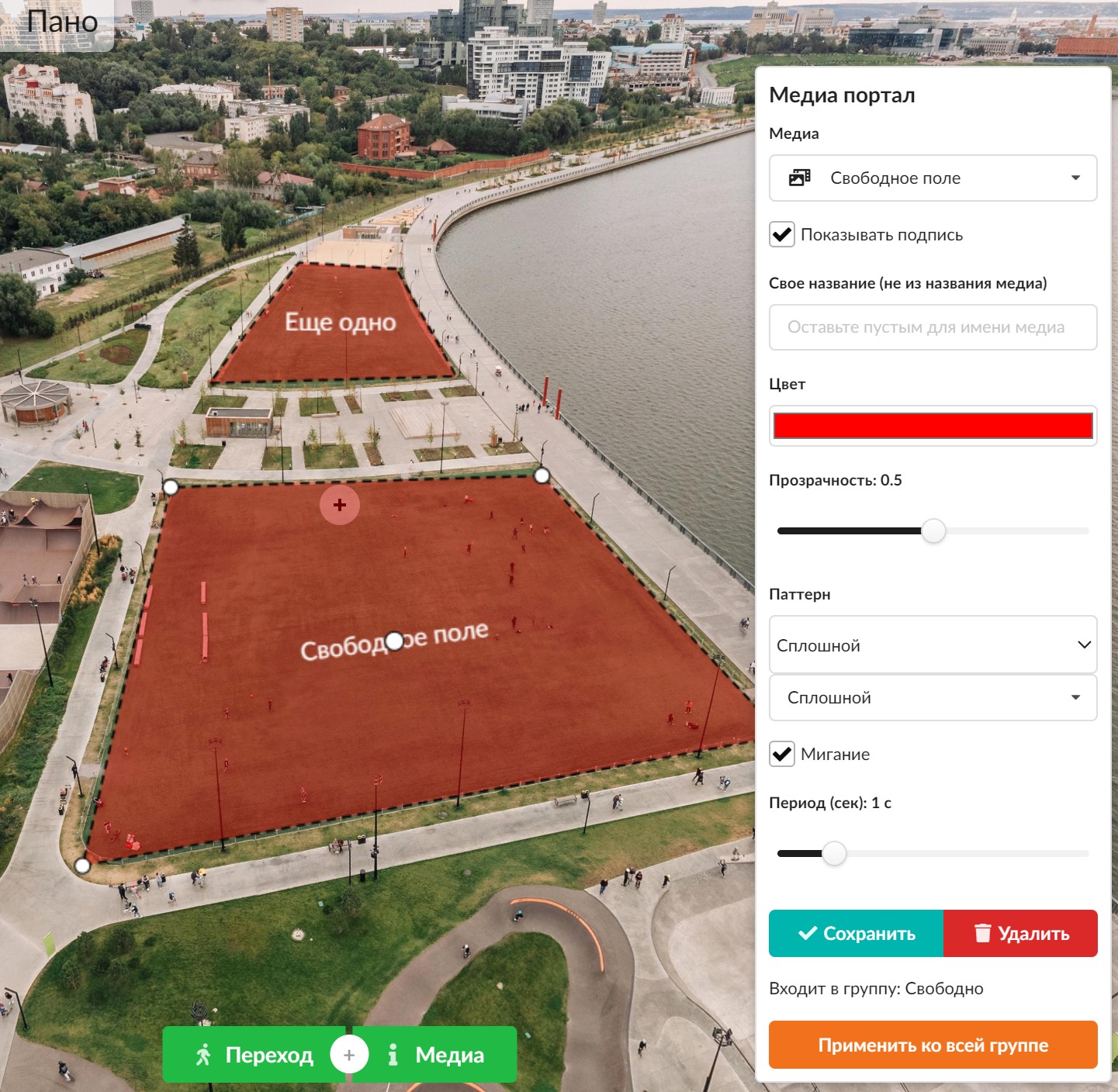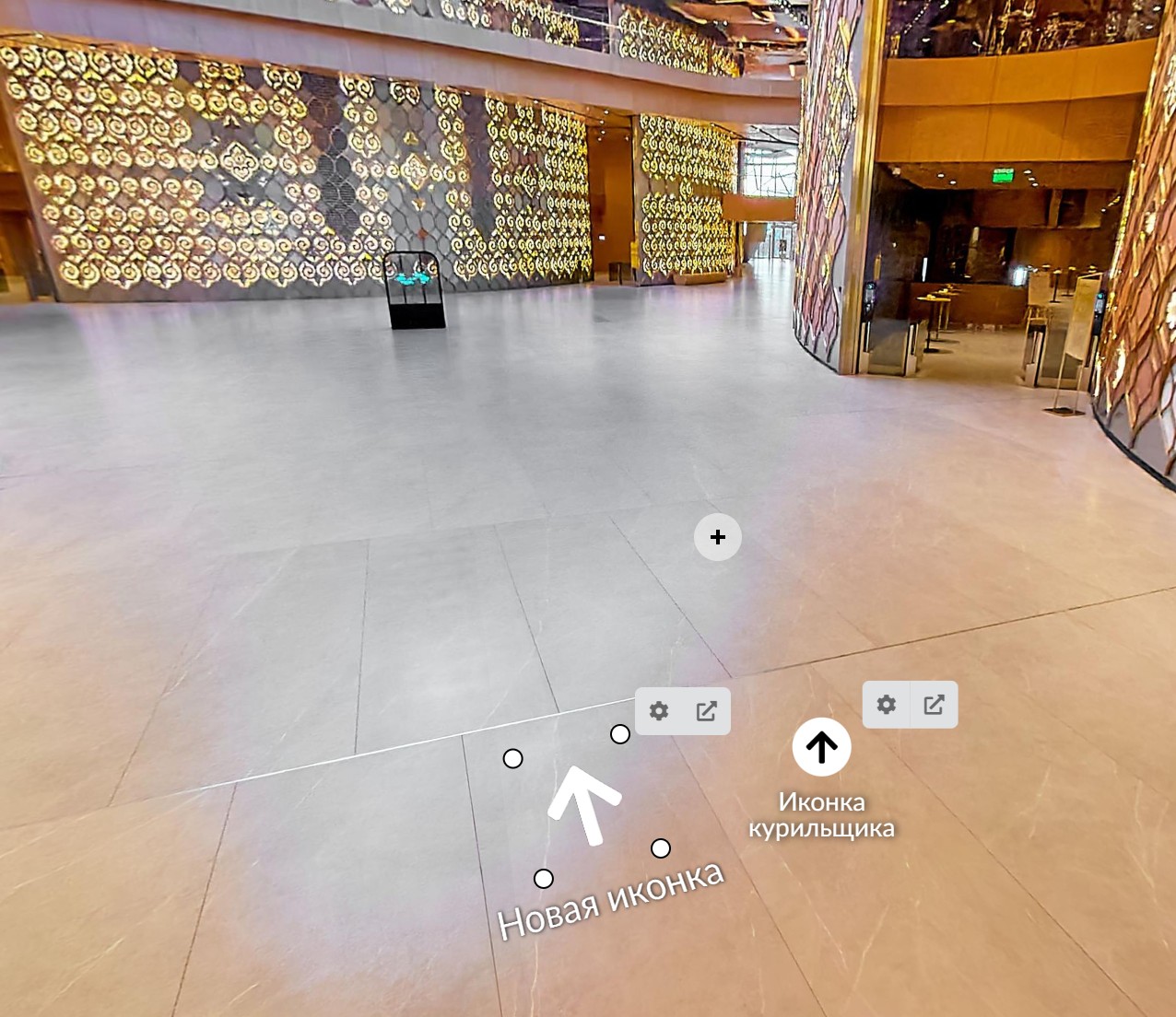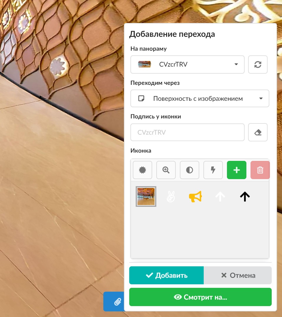 Теперь у нас появились поверхности с иконкой. Они именно лежат на поверхности панорамы и ведут себя как будто приклеены к ним. А еще в отличии от стандартные иконок, им можно задавать прозрачность, убирать окантовку и заставлять их помигивать. Не забывайте, что у новых иконок при создании и редактировании появляются контролы, которые можно тянуть и тем самым "натягивая" их на перспективу поверхности. У порталов (сейчас называется "чистая поверхность"), кстати, тоже самое - не достаточно просто их создать, надо их куда то натянуть чтобы было красиво и совпадало по перспективе.